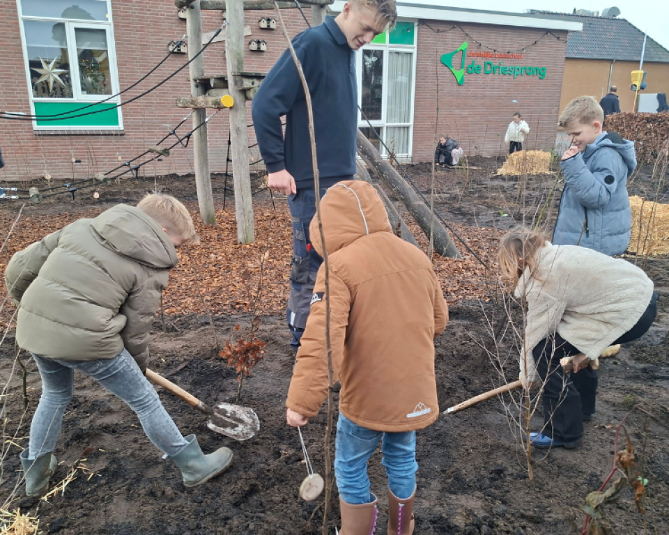 Aangeplant Tiny Forest bij CBS De Driesprong zorgt voor groene speel- en leeromgeving
