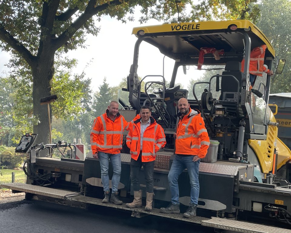 Nieuwe bovenste laag asfalt aangebracht in het bijzijn van wethouder Ten Brinke