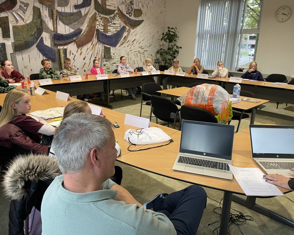 De kinderraad kwam op dinsdag 28 oktober samen in het gemeentehuis voor hun tweede vergadering van dit schooljaar. Waarnemend burgemeester Gerrit Jan Kok trapte af met leuk nieuws: de komst van de nieuwe burgemeester Nick Hubers. De kinderraadsleden waren goed op de hoogte, want ze hadden het in de krant gelezen of van hun ouders gehoord. Samen luisterden ze naar een kort interview van Twente FM met de nieuwe burgemeester.