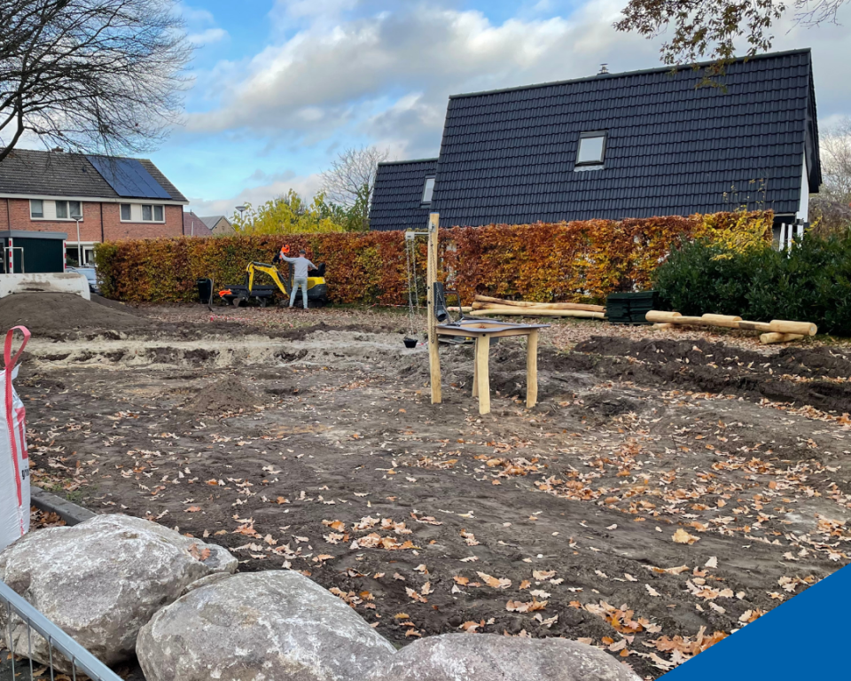 In de week van 10 november 2025 is de aannemer gestart met de aanleg. De contouren zijn al goed zichtbaar! Complimenten aan de buurt: de medewerkers worden regelmatig verwend met een kop koffie.