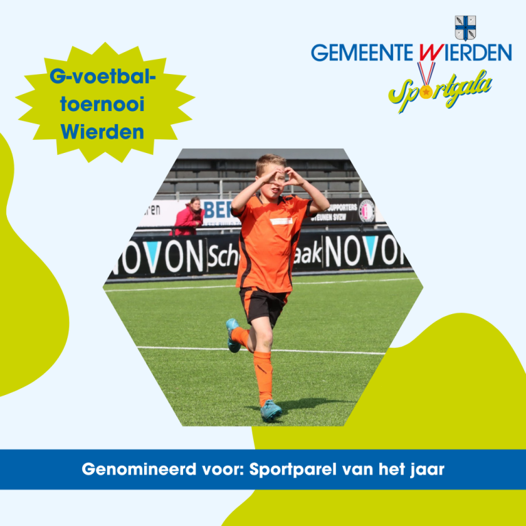 | Aanvullende informatie: | Het Go-Voetbaltoernooi is een bijzonder sportevenement in de gemeente Wierden dat al jarenlang een vaste plek heeft op de kalender. Elk jaar weer komen spelers, begeleiders, vrijwilligers en familieleden samen voor een dag vol sport en saamhorigheid. Voor de deelnemers – jongeren met een beperking – betekent het toernooi veel meer dan alleen voetballen. Het geeft hen een podium, een plek waar zij trots hun tenue aantrekken en vol enthousiasme laten zien wat ze kunnen. De maatschappelijke waarde van dit initiatief is groot. Het toernooi straalt inclusie en verbondenheid uit: opa’s en oma’s juichen langs de lijn, vrijwilligers zetten zich met plezier in en lokale verenigingen werken samen om de dag mogelijk te maken. Voor de spelers zelf is het een ervaring van erkenning en erbij horen, een waardevol tegenwicht voor de momenten waarop ze in het dagelijks leven worden onderschat of buitengesloten. Het Go-Voetbaltoernooi wordt al jarenlang gedragen door SVZW Wierden, DieVers en VSO De Brug (school voor voortgezet special onderwijs) / SOTOG (Stichting Speciaal Onderwijs Twente en Oost Gelderland). Dankzij deze betrokken organisaties, de steun van sponsors en het enthousiasme van alle vrijwilligers is de toekomst van dit evenement verzekerd. Daarmee is het een waardevolle en blijvende kandidaat voor de titel Sportparel van het Jaar. |