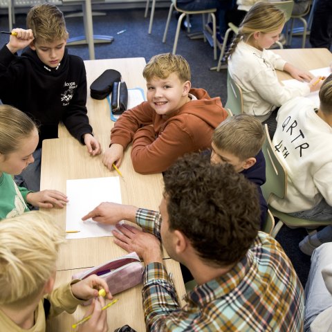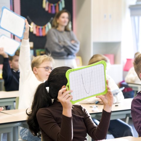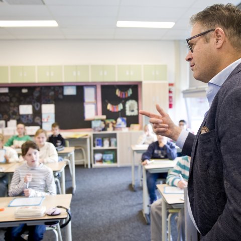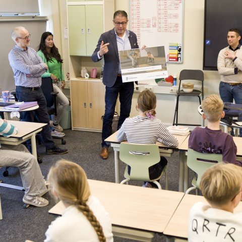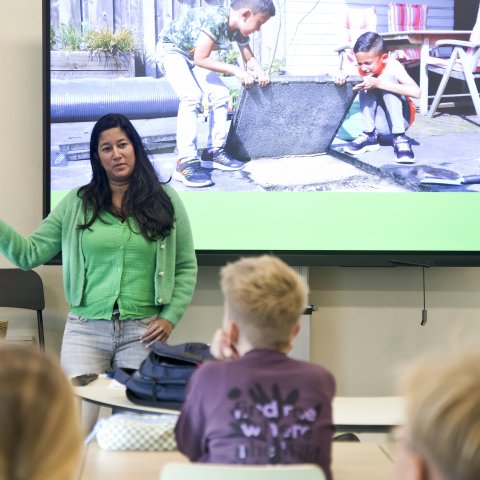 Tijdens een interactieve klimaatles in groep 6 verzorgden Aveskamp en Ten Brinke een quiz over klimaat en water. De leerlingen deden enthousiast mee, gaven veel goede antwoorden en stelden scherpe én nieuwsgierige vragen.